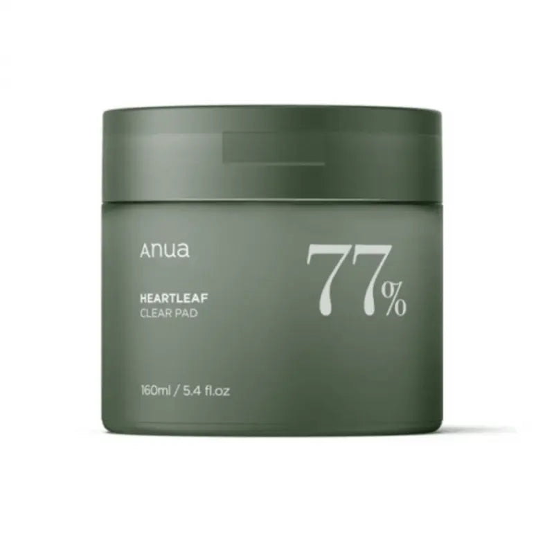 Anua Heartleaf 77 Percent Clear Pad is a toner pad that gently exfoliates and removes impurities from the skin. It contains 77% heartleaf extract, which calms and soothes the skin. To use, sweep the pad across your face, avoiding the eye area. Benefits include reduced appearance of pores, improved skin texture, and a more even tone.