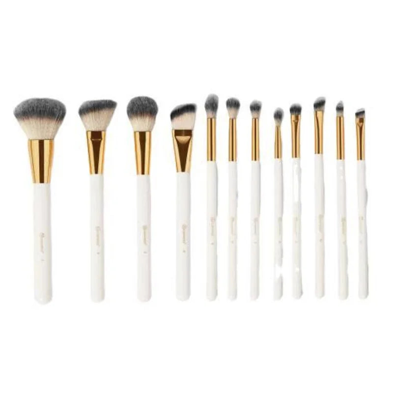 Be sure you have the right brush for every makeup task with our White Studded Elegance 12 Piece Brush Set, a complete collection of essential face and eye brushes that make it easy to sweep, smooth, smudge, and highlight. The professional quality brushes are designed with sleek, chic matte black handles and durable, densely packed synthetic bristles. Ideal for use with liquids, creams, and powders, the assortment offers perfect precision and expert blending to create polished full-face looks every time.