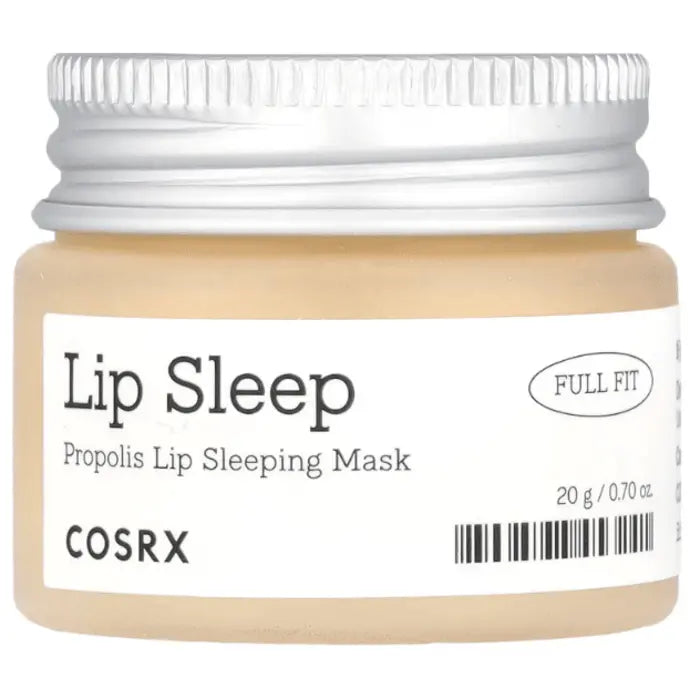 COSRX Full Fit Propolis Lip Sleeping Mask 20g is a deep nourishing product specifically designed to transform your lips while you sleep. For that purpose, this lip mask features a unique Honey-6 complex, an innovative blend formulated with honey extract and 5 other honey-derived ingredients. It provides in-depth hydration that lasts, allowing you to wake up to perfectly nourished lips. In addition, sunflower oil and shea butter in the formula further work to nourish the lips. As a result, this lip mask intensively fights dry and chapped lips overnight. Nonetheless, you can also use this product during the day to provide a burst of nourishment by applying a thin layer to the lips. Either way, you will achieve irresistibly supple, hydrated lips.