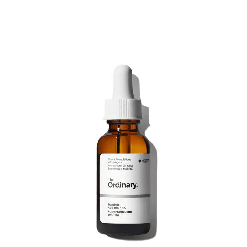 Mandelic Acid 10% + HA is an Alpha Hydroxy Acid serum that helps improve skin clarity, balance uneven skin tone, and correct skin texture in a gentle, yet effective manner. This is because it has a larger molecular weight than other alpha hydroxy acids, which results in a slower, more balanced distribution.